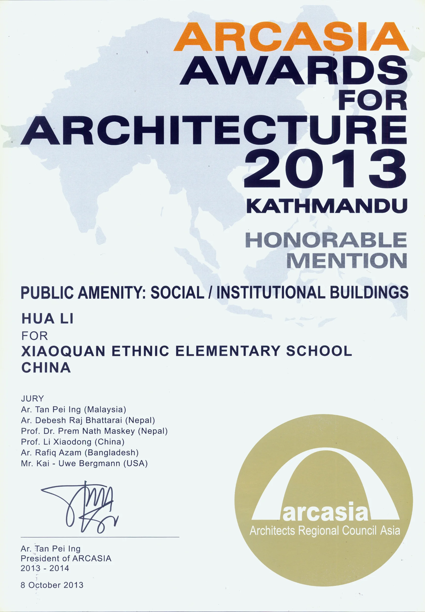 获奖 AWARD | 孝泉民族小学获2013亚洲建协建筑奖 ARCASIA Award 孝泉民族小学荣获亚洲建筑协会2013建筑奖社会性/机构性公共建筑类荣誉奖。Xiaoquan Ethnic Elementary School wins HONORABLE MENTION of ARCASIA AWARDS for ARCHITECTURE 2013 in the category of Public Amenity: Social/Institutional Buildings.